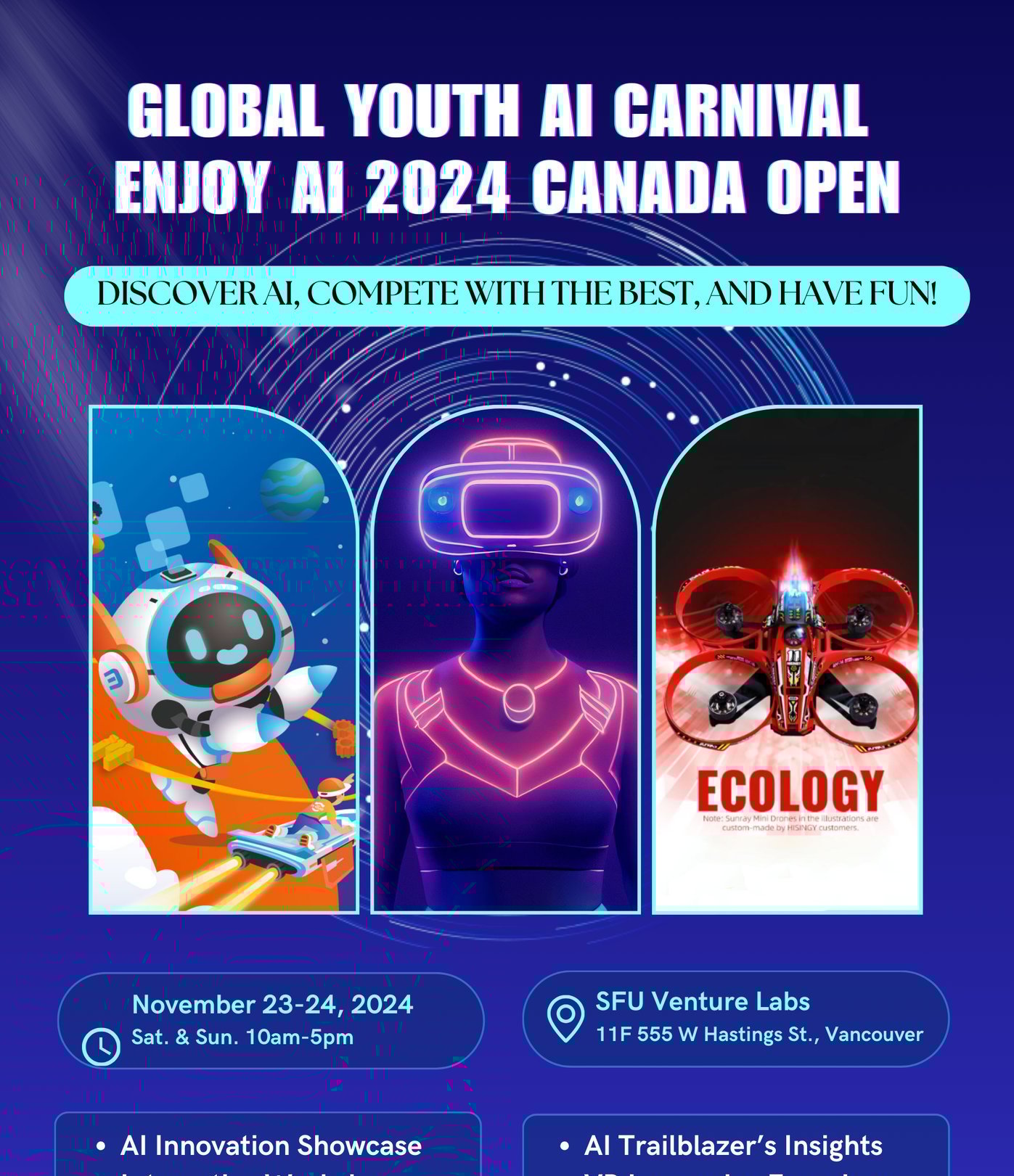 Join the biggest robotics competition ever at ENJOY AI 2024: Interstellar Journey. This exciting event is coming to SFU Venture Labs in Vancouver and is a hosting with Federation Of Global Youth Artificial Intelligence. We're also thrilled to have WhalesBot, a leading provider of STEM education products for kids of all ages, as the lead sponsor for this event!